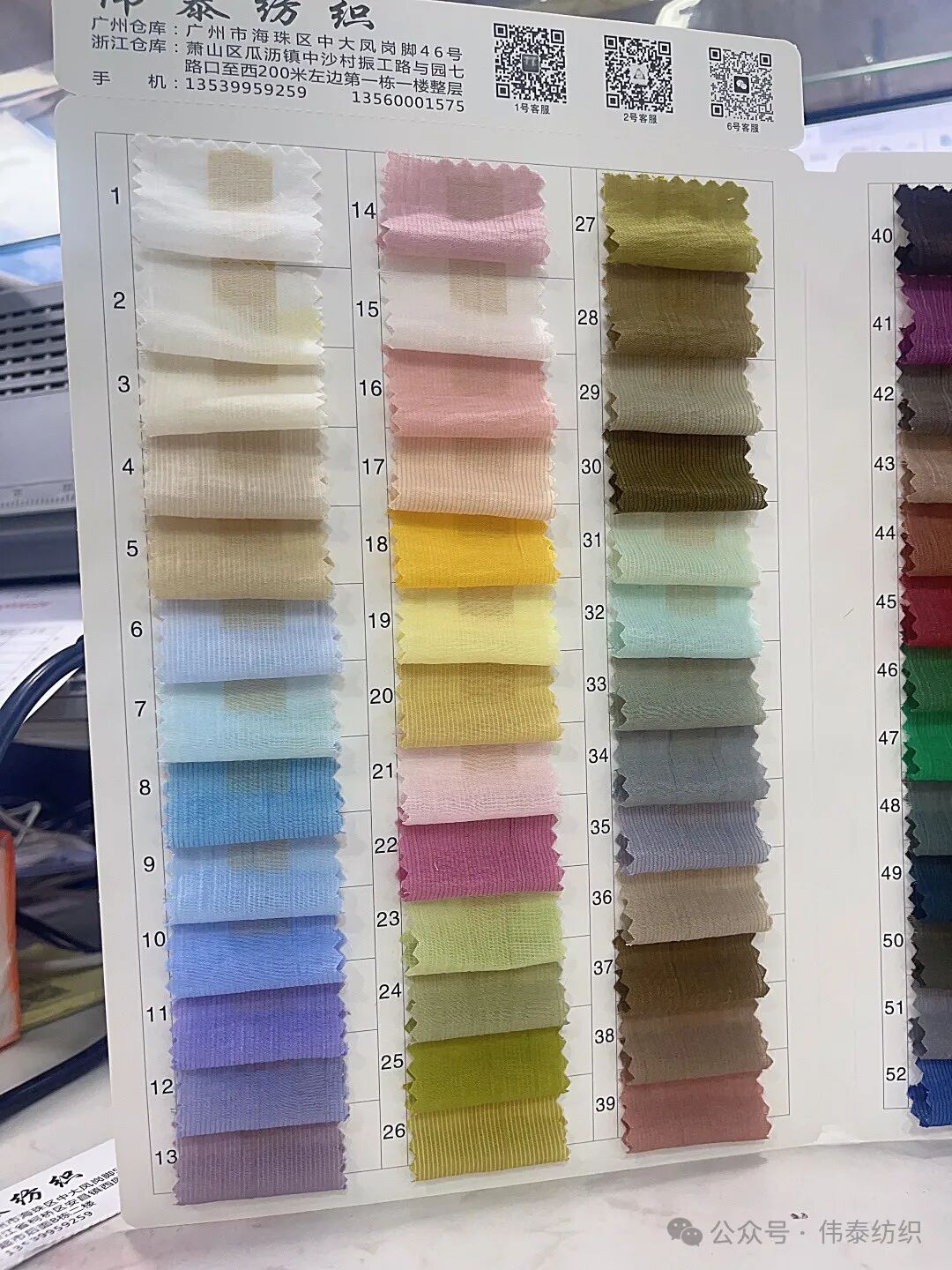 广州地址:广州市海珠区中大凤岗脚 46 号(导航搜索: 伟泰纺织凤岗脚店)