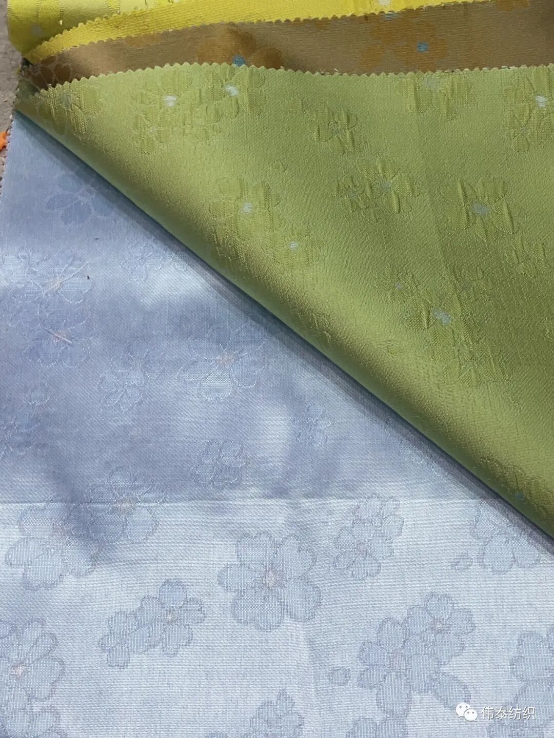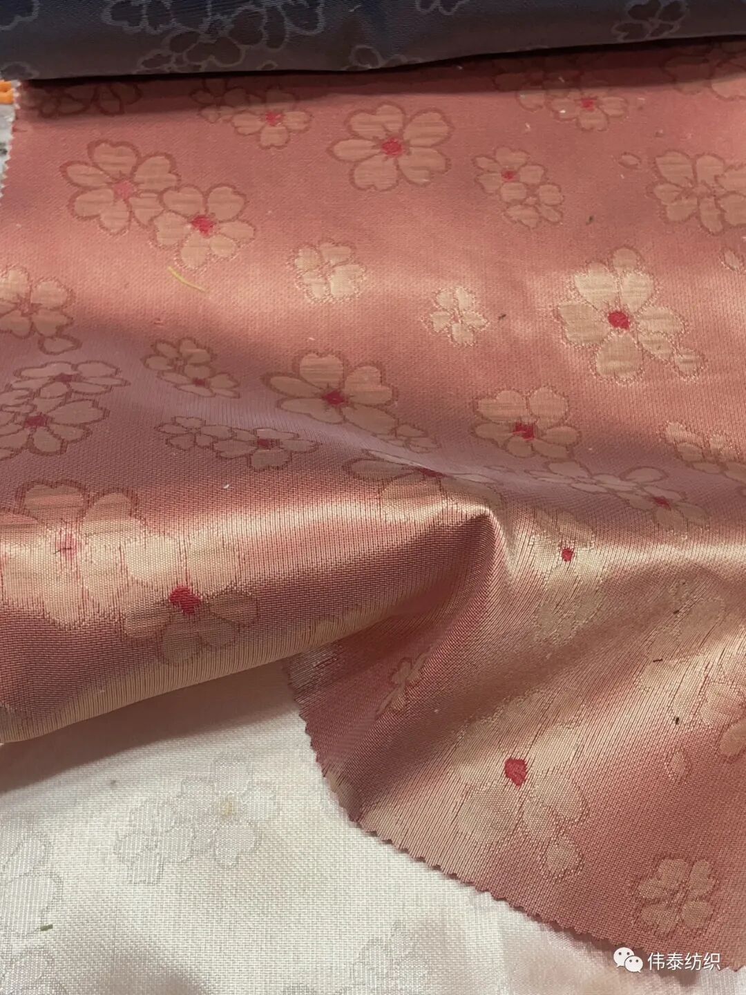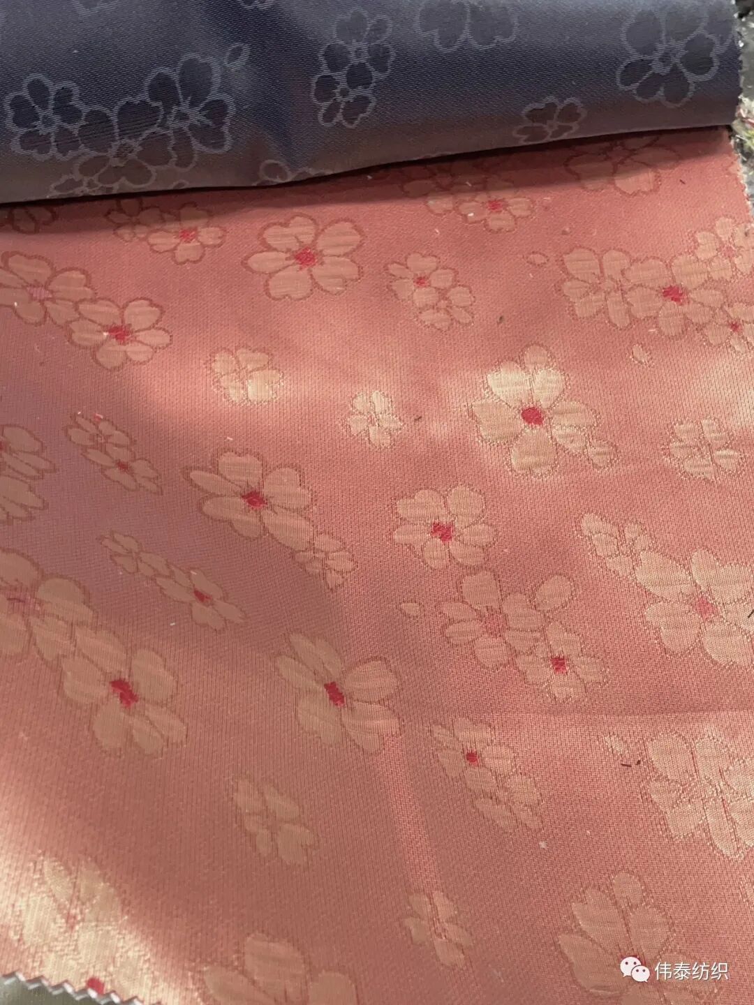 色提花面料为色织提花面料 是经过沙染好色后再经提花织机织制而成的多色面料 最后得出的色织提花面料都有两种以上的颜色 织物五彩斑斓 花型立体感强 看上去更加高雅