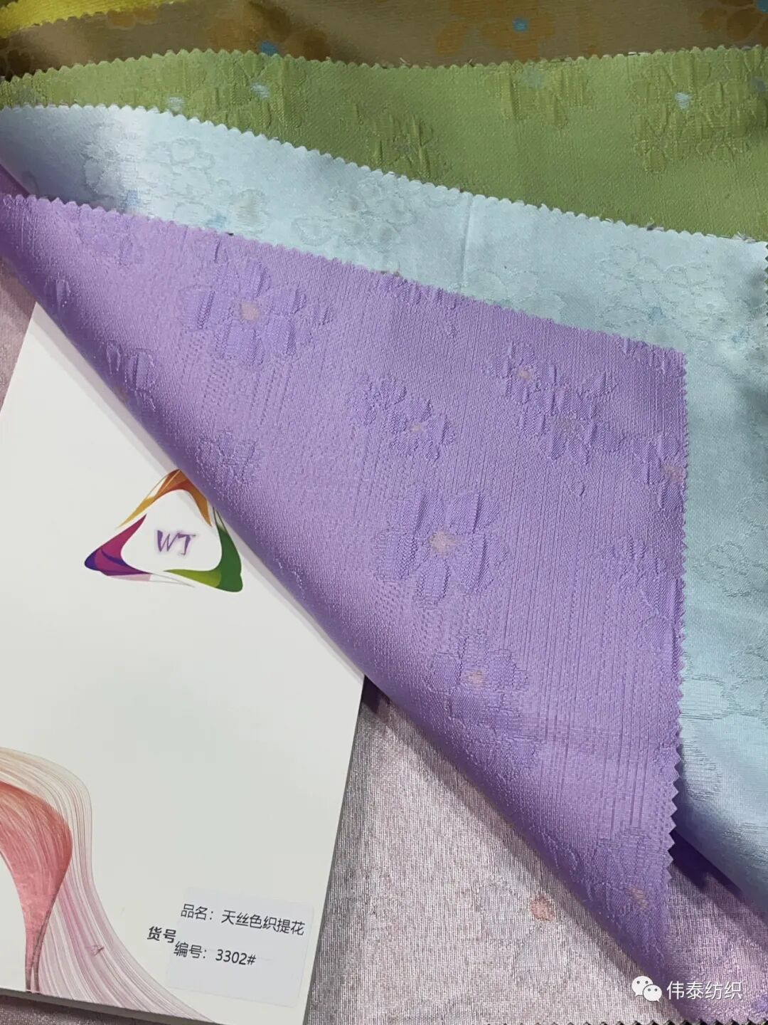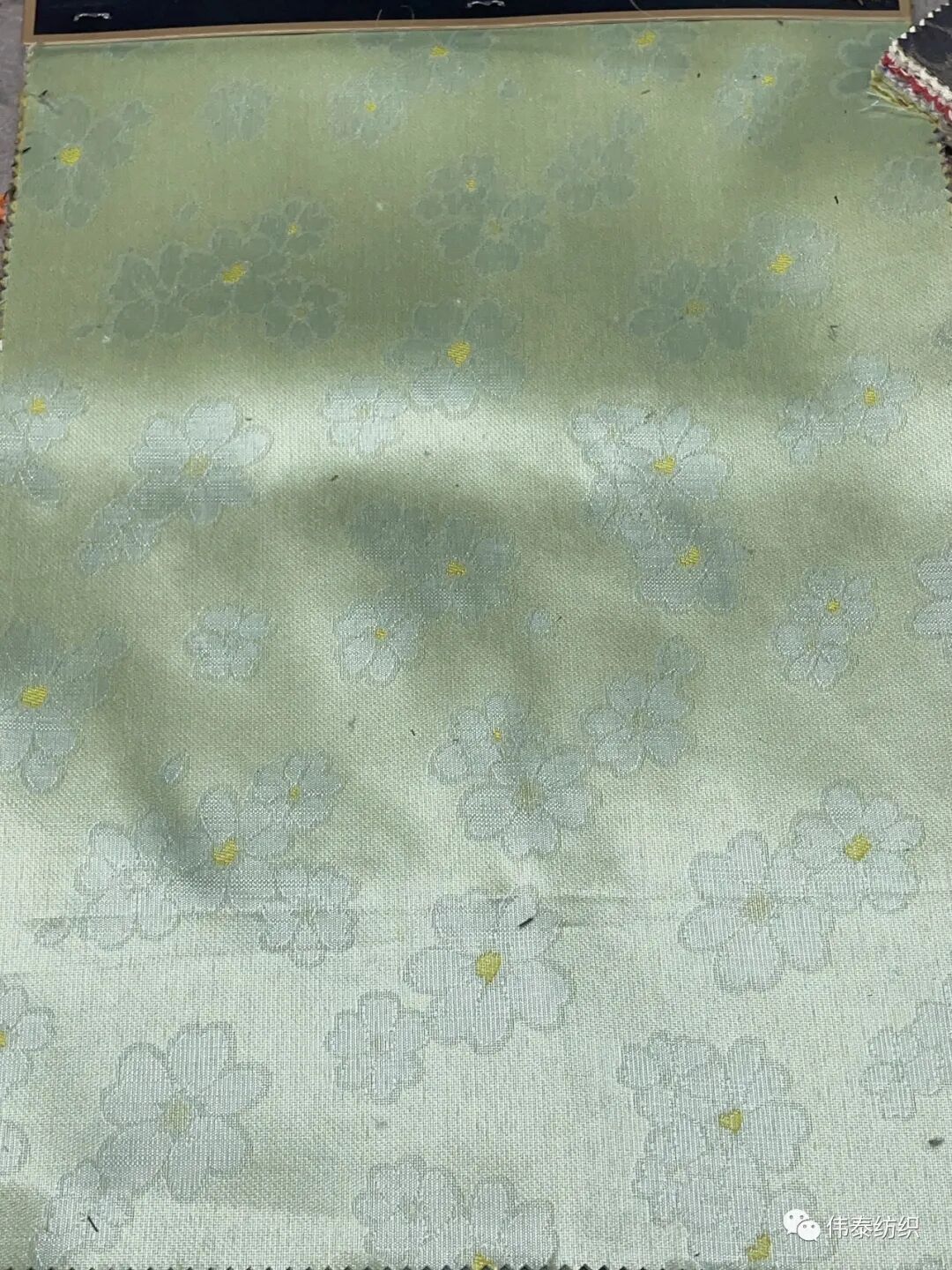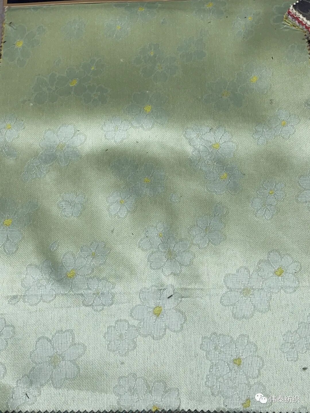 色提花面料为色织提花面料 是经过沙染好色后再经提花织机织制而成的多色面料 最后得出的色织提花面料都有两种以上的颜色 织物五彩斑斓 花型立体感强 看上去更加高雅