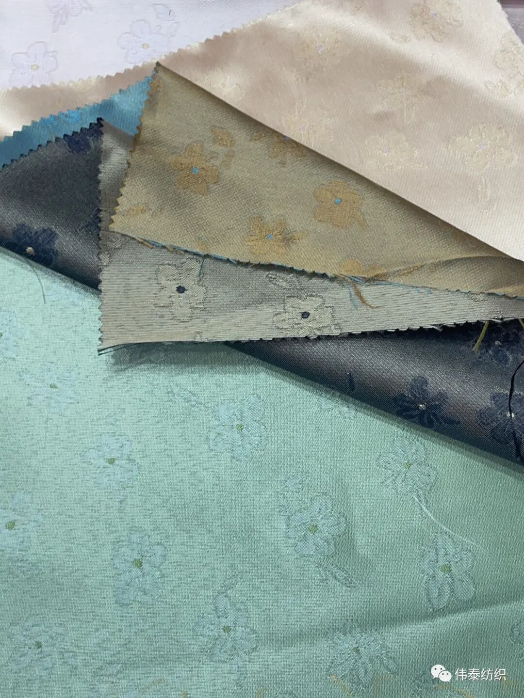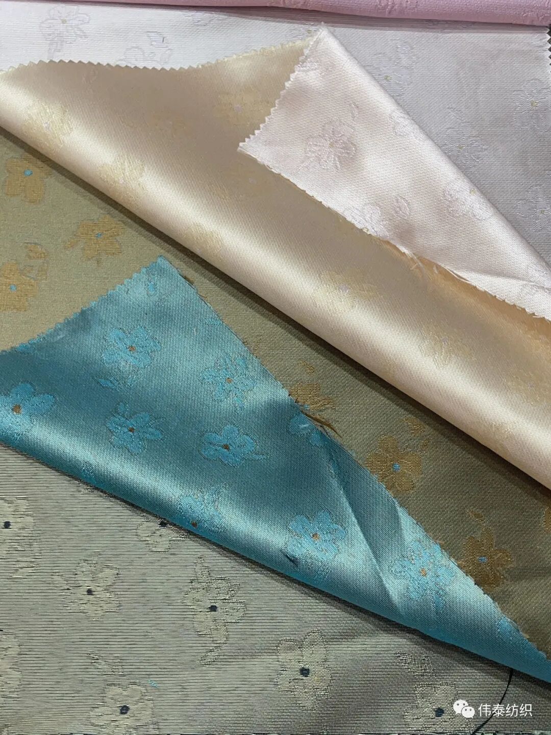 色提花面料为色织提花面料 是经过沙染好色后再经提花织机织制而成的多色面料 最后得出的色织提花面料都有两种以上的颜色 织物五彩斑斓 花型立体感强 看上去更加高雅